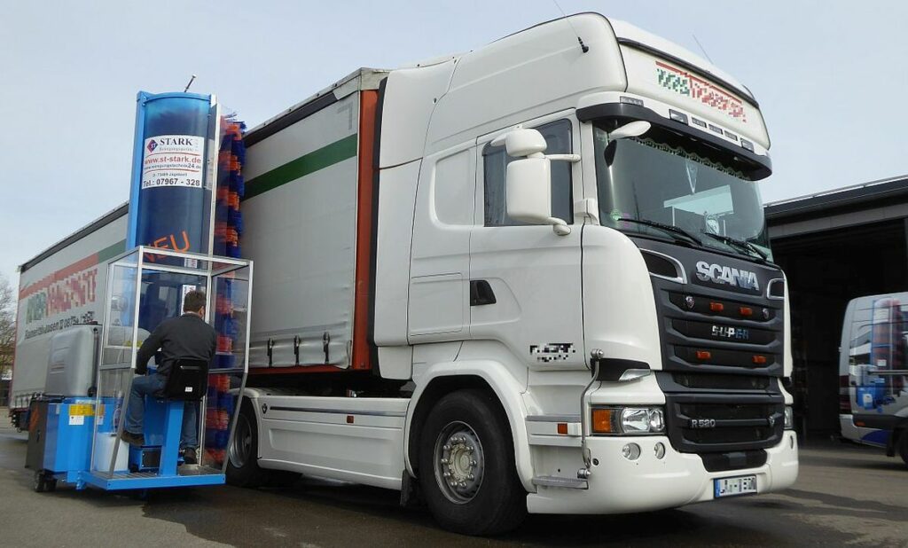 Stark bietet die mobilen Waschgeräte als Lkw- oder Omnibus-Version an. Die Unterschiede liegen Unternehmensangaben zufolge in Details. Beispielsweise verfügt die Bus-Variante über spezielle ‚Carlite‘-Waschbürsten, zudem sollen sich mit der Dachwäsche- Funktion auch Panorama-Dächer, wie sie mittlerweile bei vielen neuen Reisebussen zu finden sind, bequem reinigen lassen.