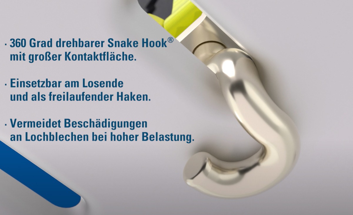Zusätzlich ist der Spezialhaken laut Spanset intuitiv in der Anwendung und universell einsetzbar. Er erfüllt die Anforderungen der aktuellen VDI 2700 Blatt 8ff – ein Vorteil bei Verkehrskontrollen und für Ihre Sicherheit im Alltag. Der SnakeHook ist patentgeschützt und exklusiv bei Spanset erhältlich.