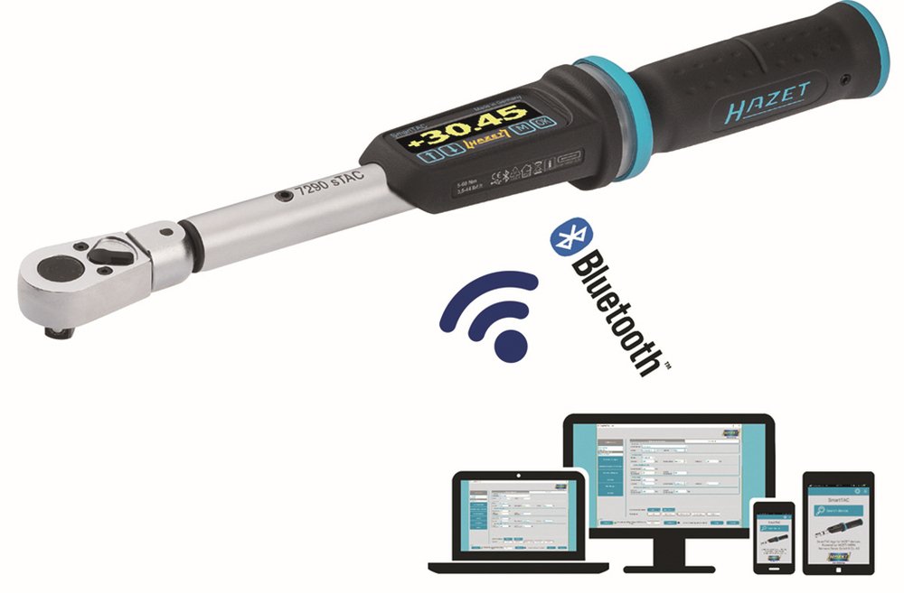 Ab sofort gibt sich auch eines der wichtigsten Handwerkzeuge von Kfz-Fachleuten ‚smart‘: der Drehmomentschlüssel. Bei den neuen Drehmoment- und Drehwinkelschlüsseln der Serie ‚System 7000 sTac‘ des Remscheider Werkzeugspezialisten Hazet hält nach eigenem Bekunden „die neueste Technologie Einzug in die Drehmoment-Technik“. Unternehmensangaben zufolge handelt es sich bei den neu entwickelten ‚SmartTac‘-Werkzeugen um hochpräzise Messinstrumente, welche sich über Bluetooth oder WLAN direkt mit dem Smartphone oder Tablet-PC des Anwenders verbinden lassen sollen. Laut Hazet sind elektronische Drehmoment- und Drehwinkelschlüssel für Verschraubungen konzipiert, die eine sehr hohe Genauigkeit verlangen oder für die eine Dokumentationspflicht gilt. Den Produktinformationen zufolge bewegt sich die Toleranz bei den neuen ‚SmartTac‘-Schlüsseln im Bereich von ± 1 Prozent beziehungsweise ± 1 Digit. Im Gegensatz zu den Vorgängern – der ‚7000 eTac‘-Serie – soll bei den neuen Modellen die Platine rund 42 Prozent kleiner ausfallen, was nicht nur kleinere Schlüssel, sondern einen Messbereich schon ab 1 Nm ermöglichen soll. Unternehmensangaben zufolge hebt die speziell für Hazet entwickelte Smart- Technologie die Arbeits- und Dokumentationsmöglichkeiten mit den ‚SmartTac‘-Drehmomentschlüsseln auf ein neues Level. Eine spezielle App sowie die Low Energy-Bluetooth- Schnittstelle sollen dem Anwender einen Live-Datenaustausch mit Endgeräten wie Smartphone, Smartwatch oder Tablet-PC ermöglichen. Darüber hinaus sollen sich die ‚smarten Schlüssel‘ auch über USB-C Schnittstelle mit einem Laptop oder PC verbinden lassen. „So kann der Schlüssel direkt programmiert oder die gespeicherten Schraubdaten zu Dokumentationszwecken auf den PC übertragen werden“, erläutert ein Unternehmenssprecher.