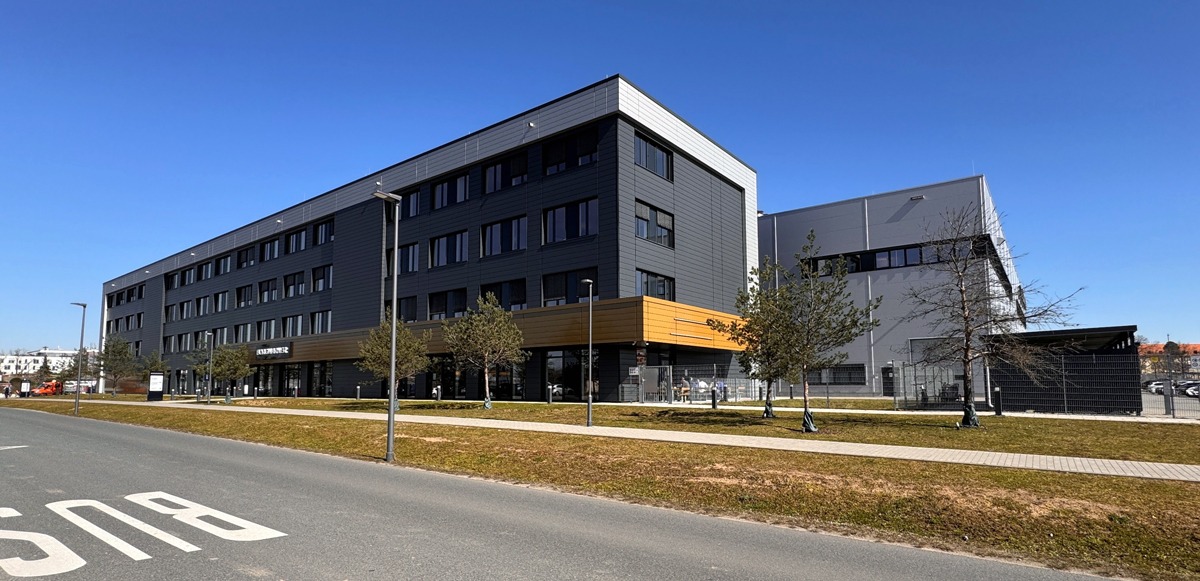 Das Produktionszentrum, von BorgWarner für Nutzfahrzeugbatterien, inklusive Bürogebäude und Kantine in Darmstadt. Bild: Georg Blenk