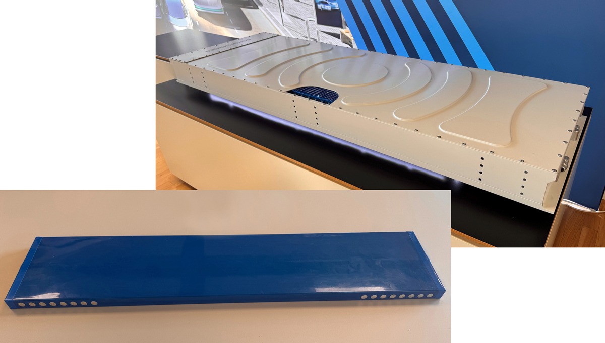 Konfektioniertes LFP-Gesamtmodul (oben) und einzelne LFP-Flachzelle. Bilder: Georg Blenk