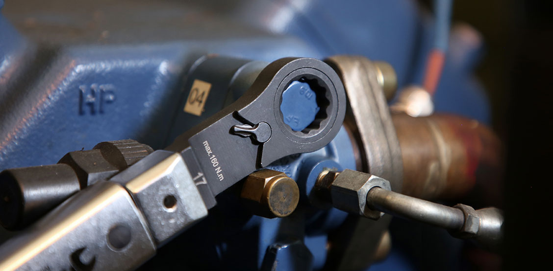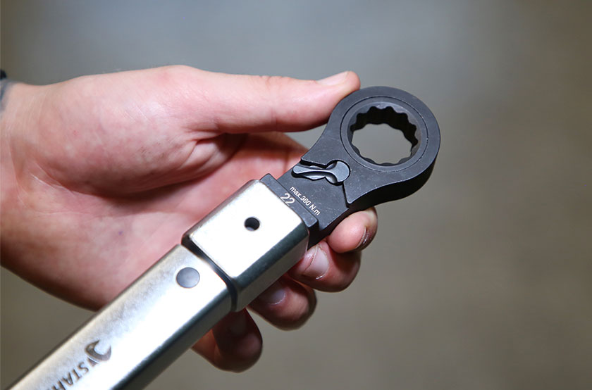 Ein weiterer Vorzug der Einsteck-Ringratschen sei ihr besonders flaches Design. Die spezielle Bauform sorge dafür, dass Schraubpunkte selbst in engen Bauräumen erreicht werden können. Das Umschalten von Links- auf Rechtslauf ist dabei mittels eines Hebels möglich, der bündig mit der Oberfläche der Einsteck-Ringratsche abschließt. Der Vorteil: So kann er nicht an anderen Bauteilen hängenbleiben und unbeabsichtigt betätigt werden.