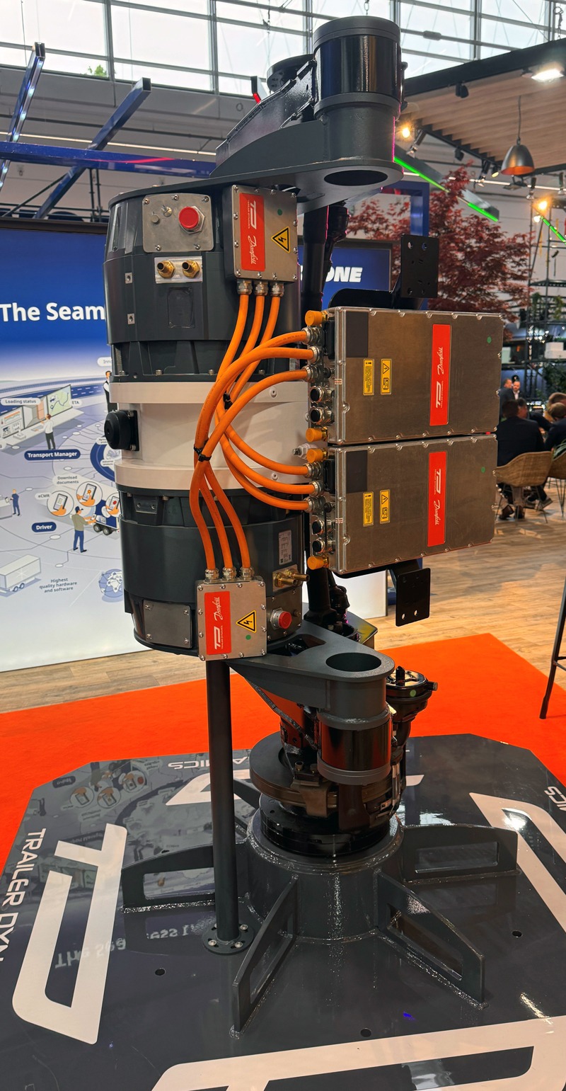 Dabei unterstützt der elektrischer Antriebsstrang jede Sattelzugmaschine, unabhängig von ihrer Antriebsart, auf der gesamten Strecke, sowohl beim Anfahren als auch beim Bewältigen von Steigungen. Beim Verzögern oder Bergabfahren soll die eAchse zukünftig auch Bremsenergie in elektrische Energie umwandeln und in die Traktionsbatterien des eTrailers einspeisen. Aktuell werden die Batterien bei Bedarf über einen CCS2-Anschluss von extern geladen. Die Batteriekapazität bietet Trailer-Dynamics in einem modularen System an. So könne der eTrailer an die individuellen Anforderungen des Kunden angepasst werden kann. Das intelligente Energie-Managementsystem (Predictive-Drivetrain-Controll, PDC) prognostiziert die Route, die Topografie, den Verkehr oder das Wetter, um den Energieeinsatz und in Kürze die Rekuperation optimal zu steuern.