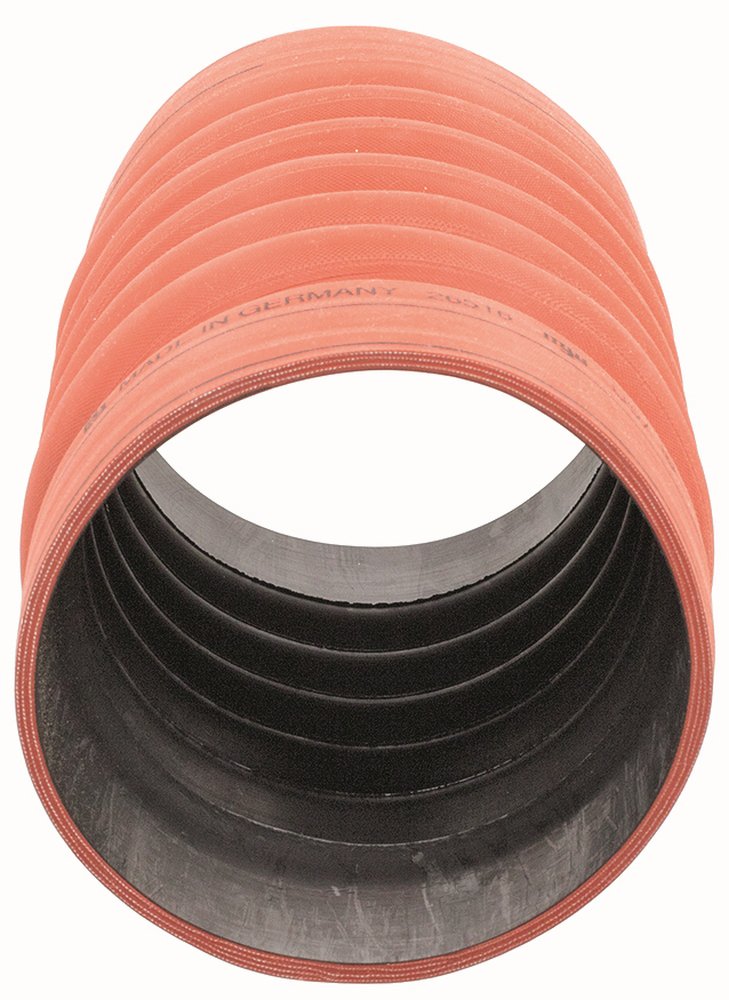 Beim Ersatz eines Ladeluftschlauches gibt es dem Fachmann zufolge jedoch einiges zu beachten. „Ladeluftschläuche bestehen aus einem mehrlagigen Verbund aus Elastomer-Werkstoff, also Weichgummi, und Festigkeitsträgern. Diese bestehen aus synthetischen Fasermaterialien und werden als Garne oder Gewebe aus Endlosfilamenten oder Stapelfasergarnen eingebaut. Je nach Anwendungsfall verstärken Polyamid-, Polyester- sowie Aramidfasern den Ladeluftschlauch und abhängig von den Anforderungen sind die Schläuche zwei- bis fünflagig aufgebaut“, berichtet der Ersatzteilexperte. Entsprechend der geforderten Flexibilität verwende man innen glatte Schläuche mit unterschiedlichen Faltengeometrien außen. „Stahlringe auf der Außenseite verhindern, dass sich die Falten unter dem Ladedruck ie ein Ballon aufblähen oder bei Unterdruck kollabieren“, erklärt Keller.