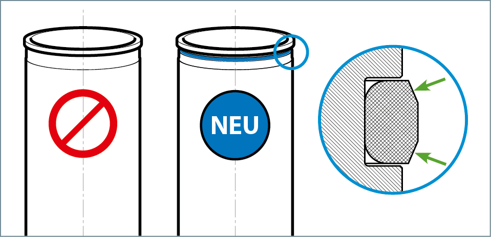 Weiterhin ist den Dichtungsfachleuten zufolge wichtig, dass der Mechaniker den zusätzlichen Dichtring richtig herum verbaut: „Die Rundung gehört nach innen, die Fasen nach außen“, so die Experten. „Wird der Buchsenbund nicht nachgearbeitet, kann der Dichtring beim Einbau beschädigt werden“, warnen die Fachleute. Bei einer Reparatur muss demnach immer auf die neue Version umgestellt werden.
