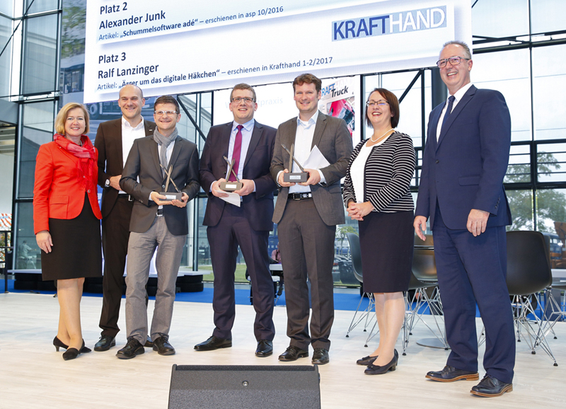 Beim diesjährigen Journalistenpreis „Wort und Werkstatt“ erreichte KRAFTHAND-Redakteur Ralf Lanzinger mit seinem Artikel „Ärger um das digitale Häkchen“ den dritten Platz. Die Preisverleihung fand im Rahmen der Nutzfahrzeugmesse NUFAM in Karlsruhe statt.
