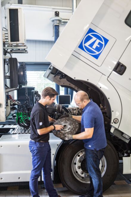 "Da die Kupplung ein Überlastschutz für den gesamten Antriebsstrang ist, müssen die einzelnen Komponenten des Kupplungssystems exakt aufeinander abgestimmt sein. Im Betrieb ist die Kupplung je nach Einsatzbedingungen hohen dynamischen Einflüssen ausgesetzt, was zwangsläufig zu Verschleiß führt, insbesondere an der Reibscheibe. Durch diesen systembedingten Verschleiß des Kupplungsbelags ändern sich die Kraft-Weg-Seiten Verhältnisse, was schon bei der Kupplungsauslegung zu berücksichtigen ist", erläutern die Kupplungsfachleute von ZF Aftermarket. Entscheidend für die Wirtschaftlichkeit eines Kupplungssystems ist daher ein effektives Zusammenspiel aller Komponenten. Speziell für schwere Nutzfahrzeuge wurde nun ein neuer Kupplungsbelag entwickelt, der die Schwungradreibfläche schonen und dadurch den Verschleiß spürbar minimieren soll.
